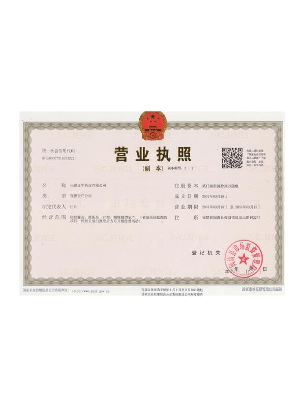 福建延年藥業(yè)有限公司位于福州市閩清縣城關(guān),工廠坐落在風(fēng)景秀美的梅城森林公園山腳下,公司前身是中國(guó)人民解放軍第9747工廠,創(chuàng)辦于1970年9月,隸屬南京軍區(qū)總后勤部,企業(yè)的地方名稱為福建閩清制藥廠。1998年6月為貫徹中央關(guān)于軍隊(duì)不再?gòu)氖陆?jīng)商活動(dòng)的決議,企業(yè)軍轉(zhuǎn)地改制移交地方,2001年9月企業(yè)改制,更名為福建延年藥業(yè)有限公司。